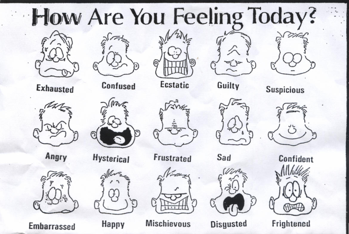 While in outpatient day therapy (therapy in a group), we had to express every day how we are feeling. It had to be a feeling word, which is an adjective. It had to describe an actual feeling, not a complacent word. Fine was never accepted and I’m sure that ‘swell’ wouldn’t have been either. Granted it was really early in the day, but I always had difficulty finding the word to describe how I felt. Even with a list of feeling words.